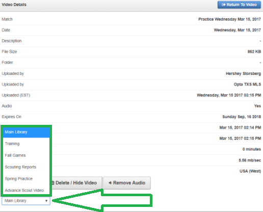 Near the bottom of the details page select the folder you want the video to be in.